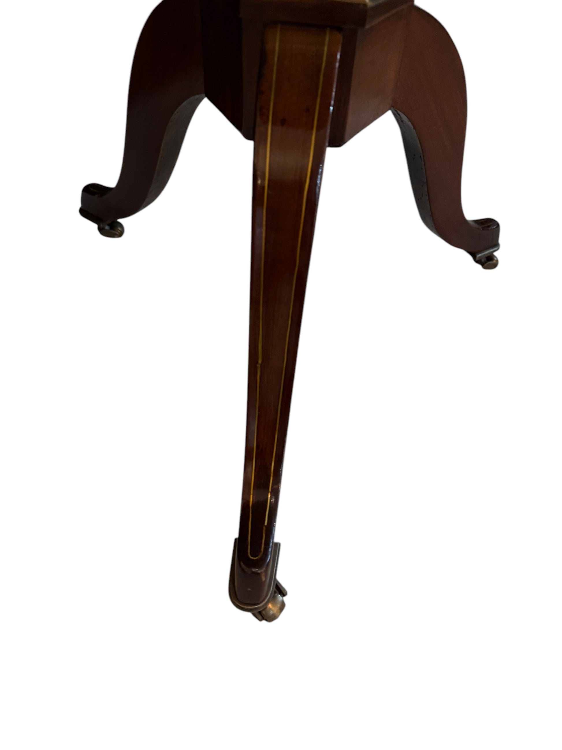This versatile piece, often referred to as a wine table, urn stand, or occasional table, would have been used for serving tea, wine, or displaying decorative objects. The richly figured mahogany surface shows a warm patina, highlighting its age and fine craftsmanship.