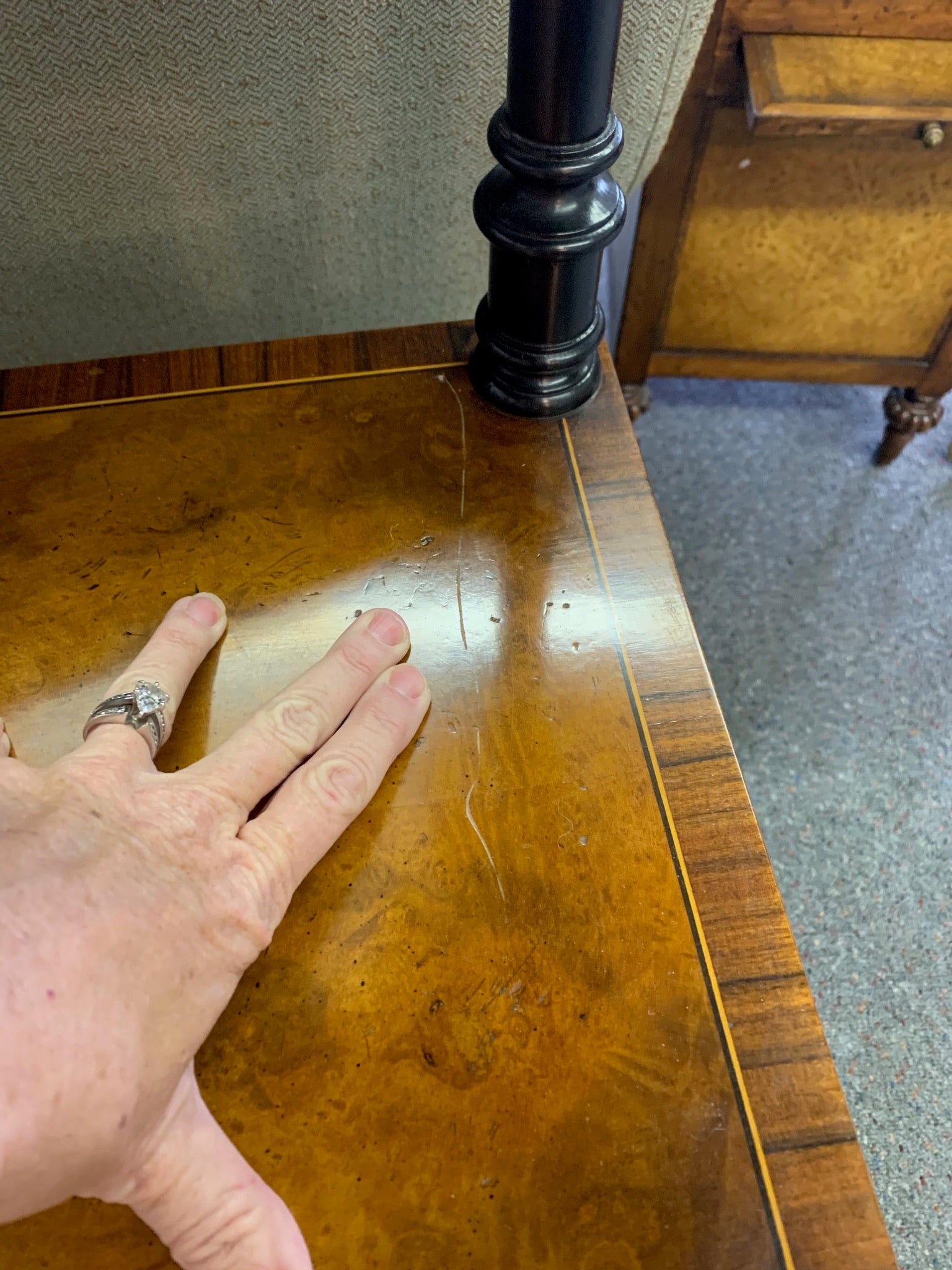 Italian Burled Wood and Black Triple Shelf