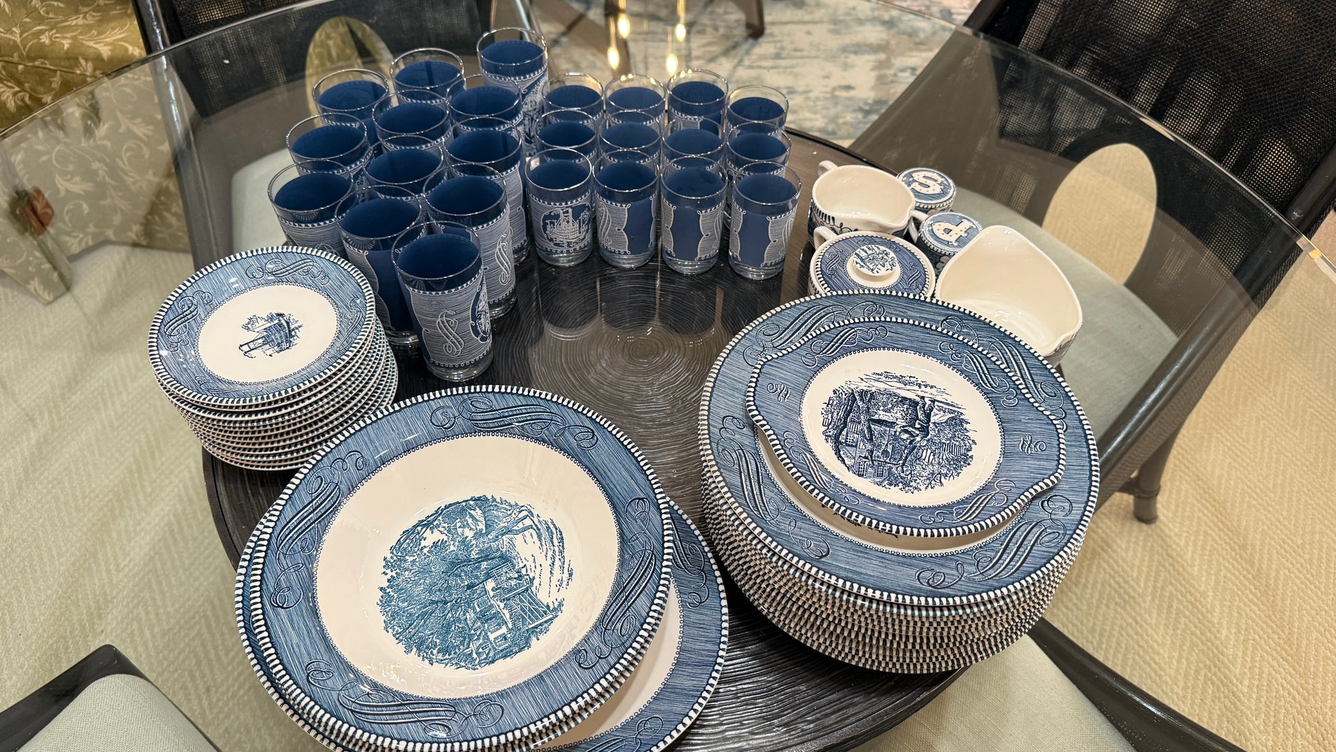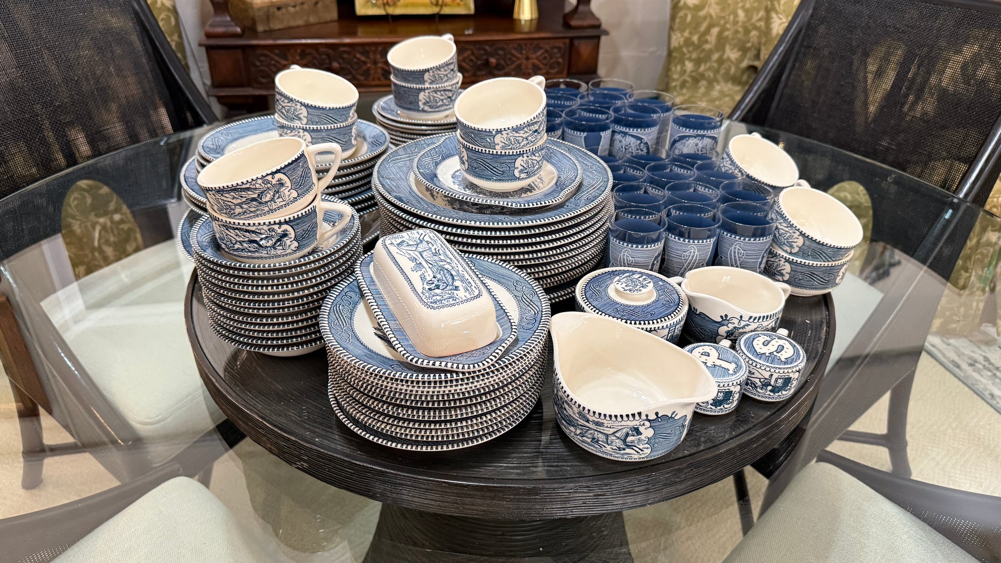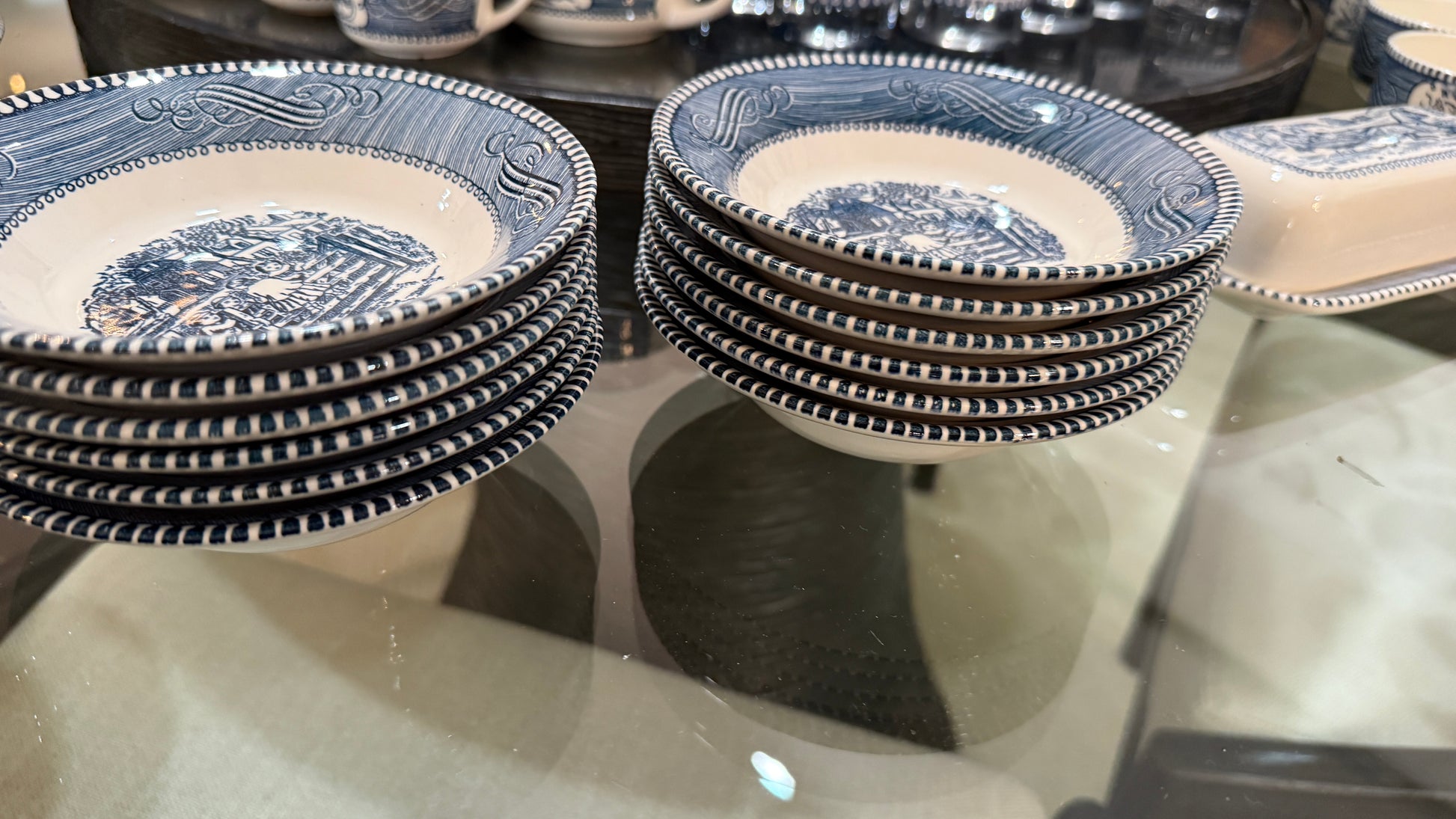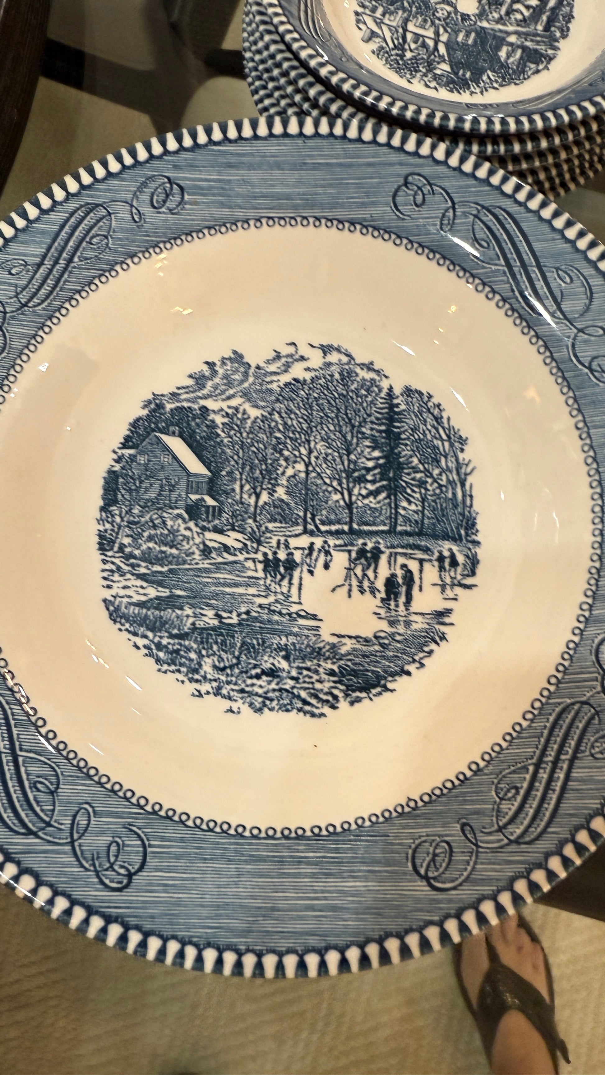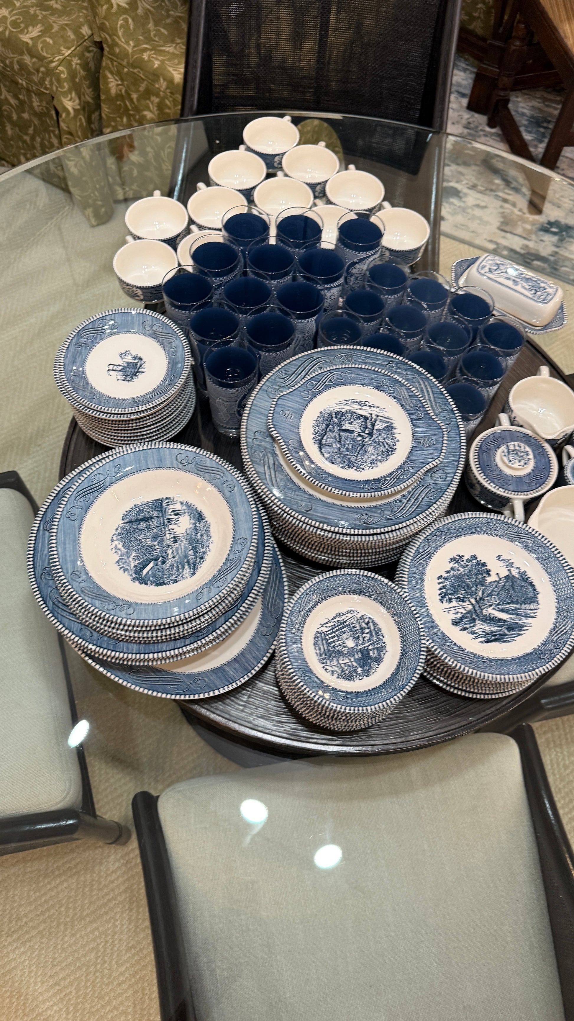 Discover a timeless collection of Currier & Ives vintage dishes complete with matching glasses. Each piece showcases classic, detailed artwork that brings historical charm to your table. Perfect for collectors or those wanting to add nostalgic elegance to everyday dining, this set blends beauty with functionality, elevating any meal or special occasion. Embrace a piece of American heritage with this large, carefully curated collection designed to impress and inspire.