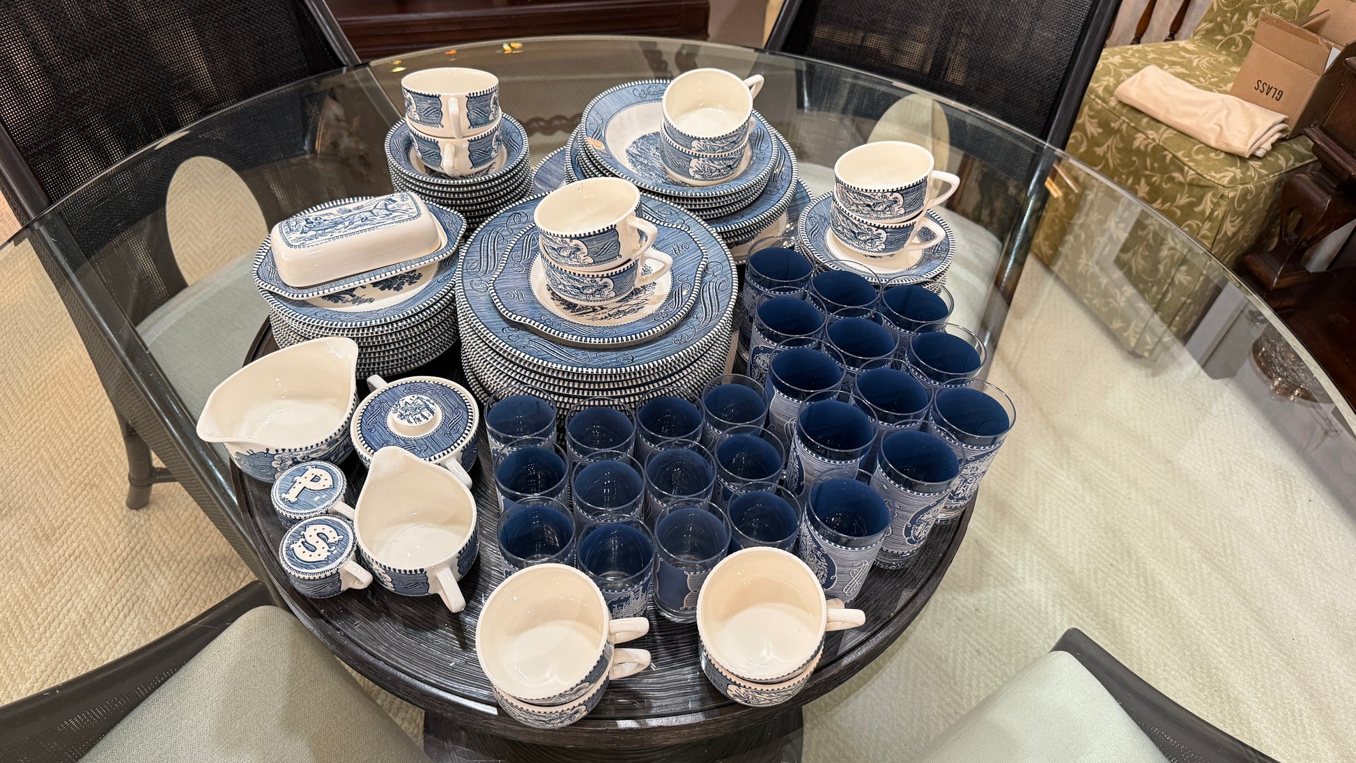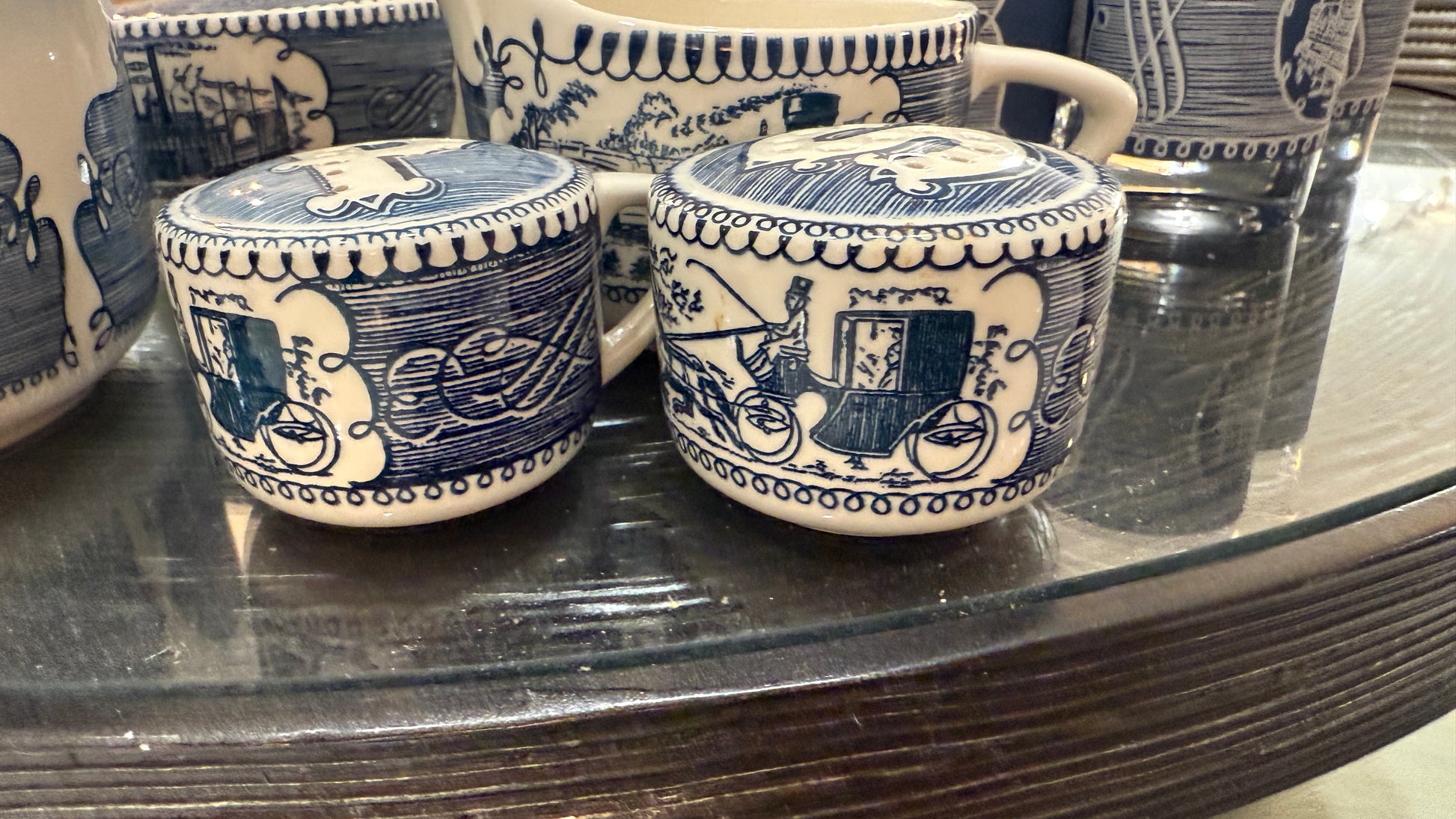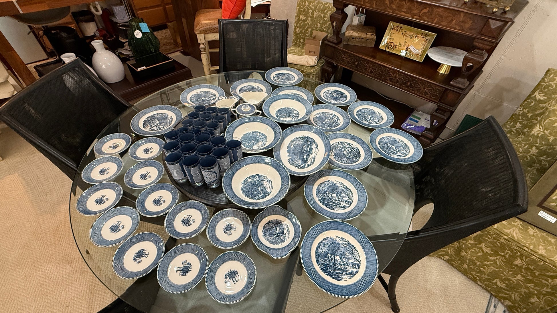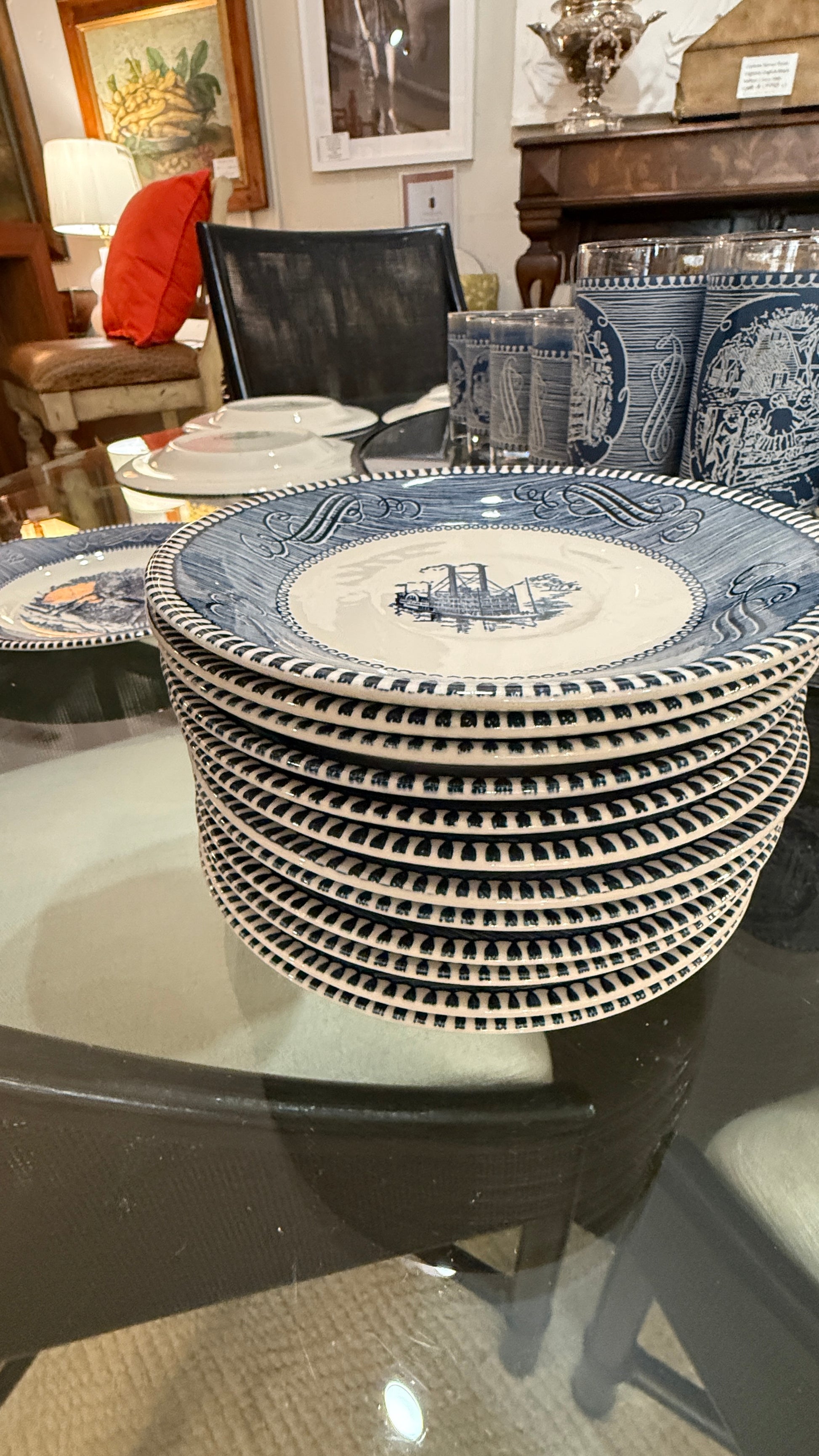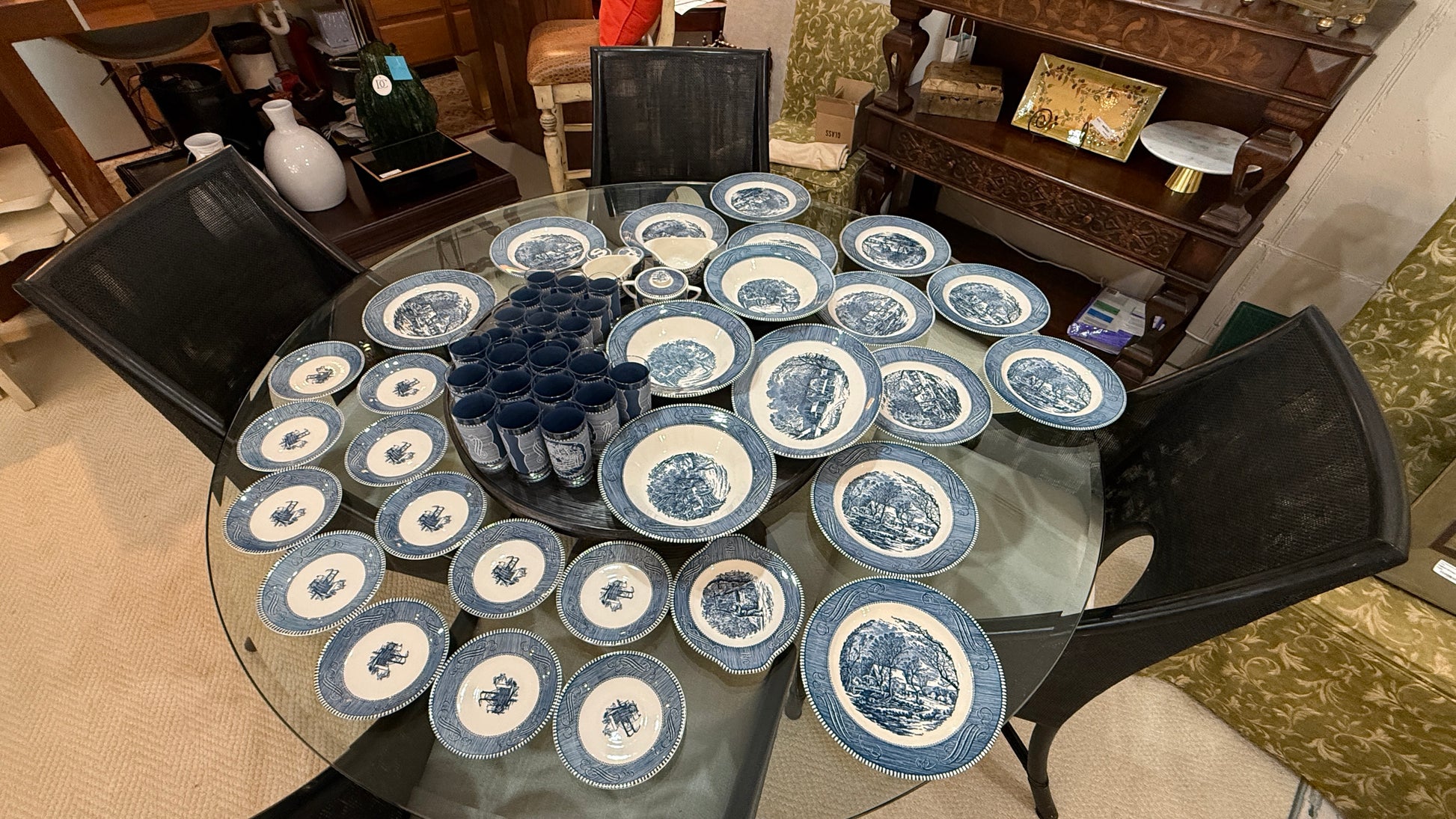 Discover a timeless collection of Currier & Ives vintage dishes complete with matching glasses. Each piece showcases classic, detailed artwork that brings historical charm to your table. Perfect for collectors or those wanting to add nostalgic elegance to everyday dining, this set blends beauty with functionality, elevating any meal or special occasion. Embrace a piece of American heritage with this large, carefully curated collection designed to impress and inspire.