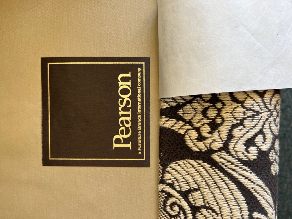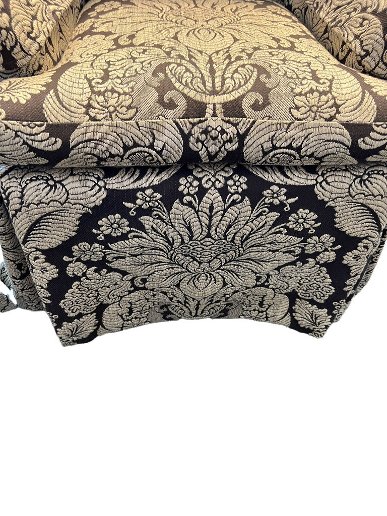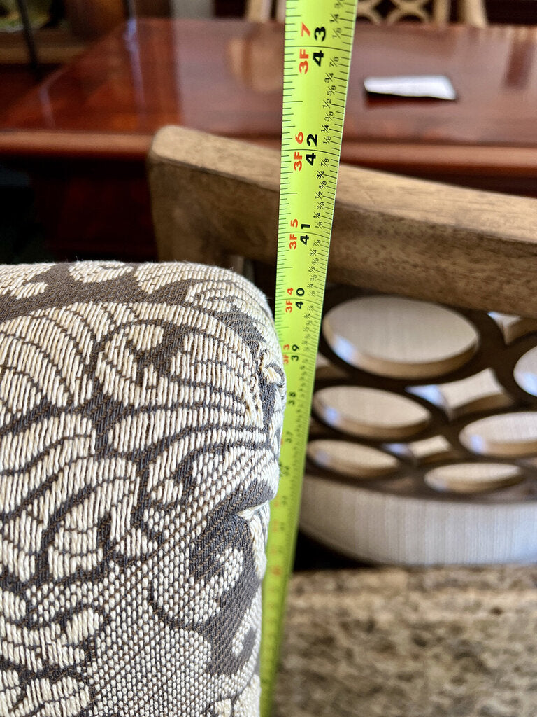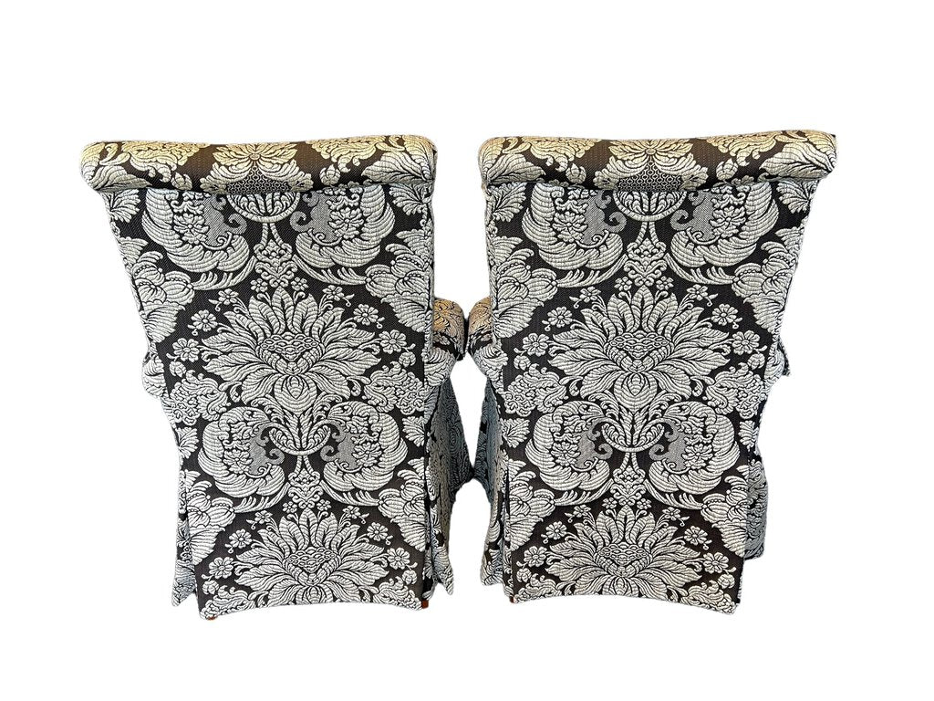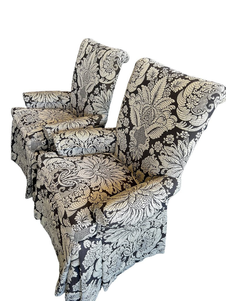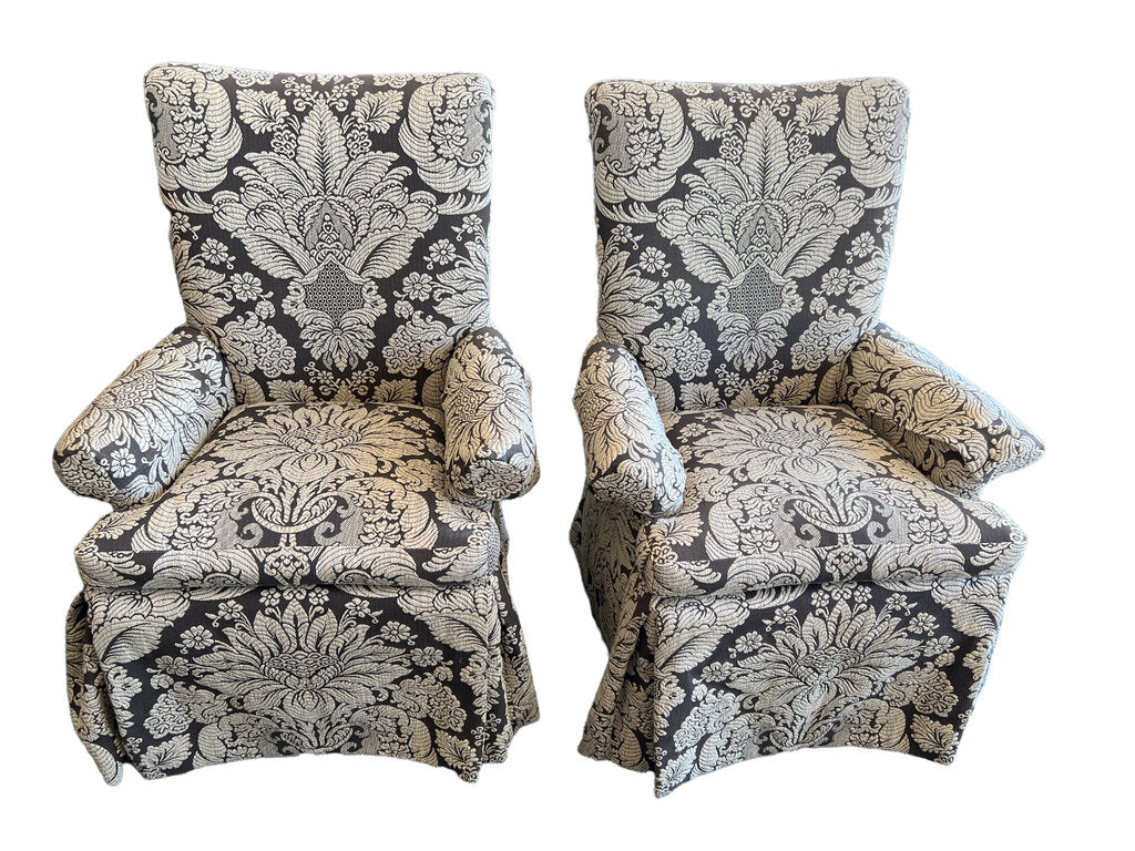 Elegant set of 2 skirted dining chairs, Host and Hostess by Pearson Furniture. The upholstery is perfect tones of beige and greige/brown. Like new condition.