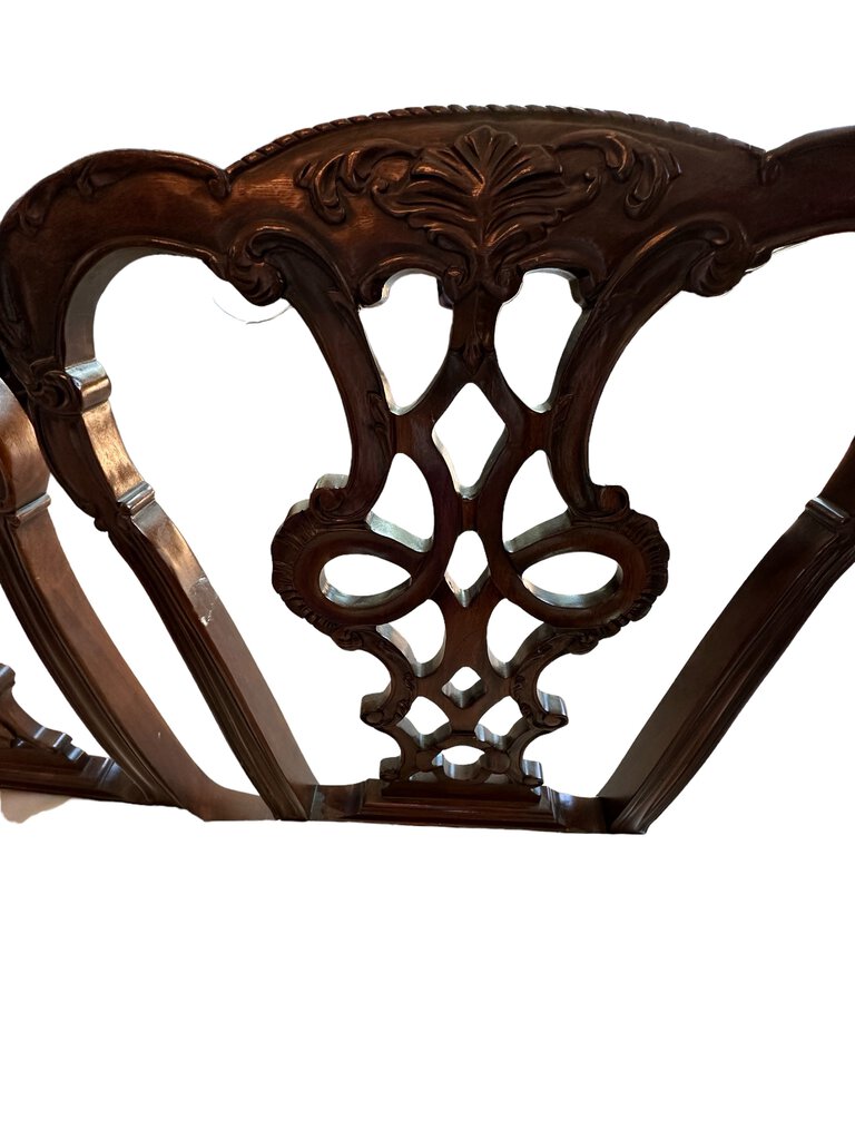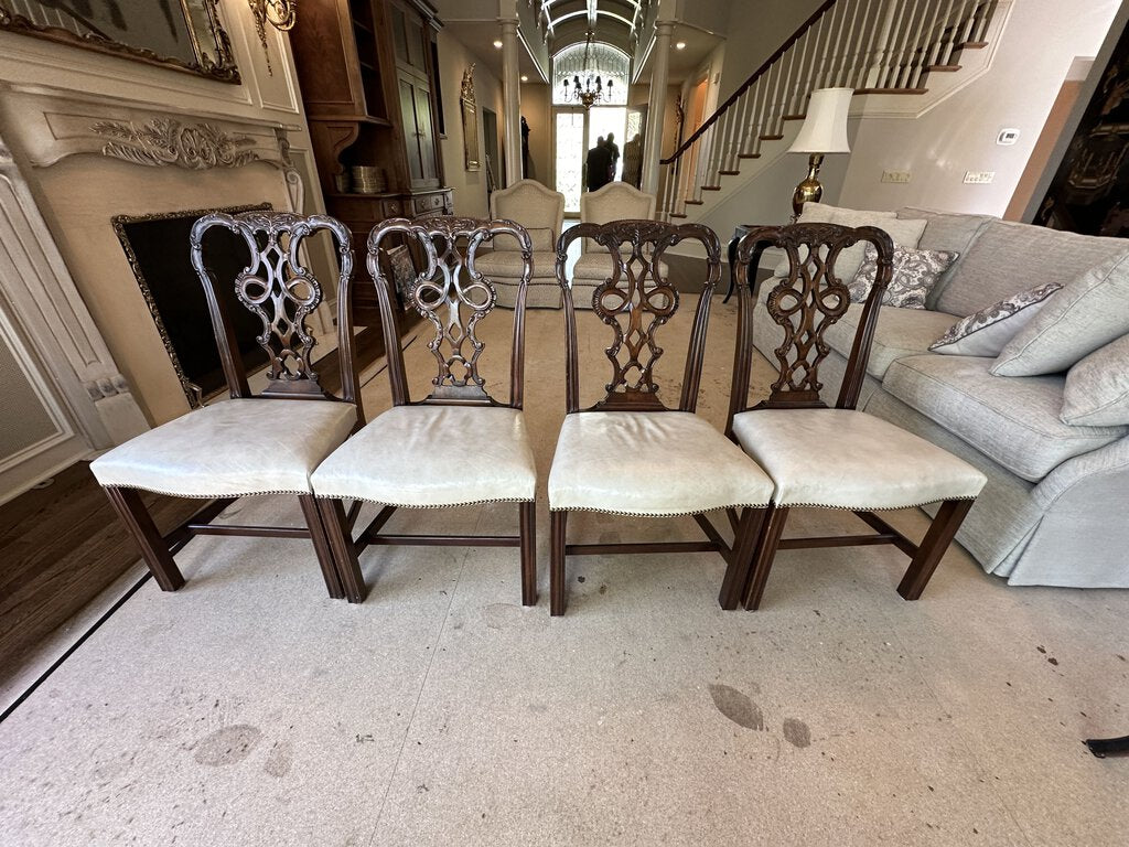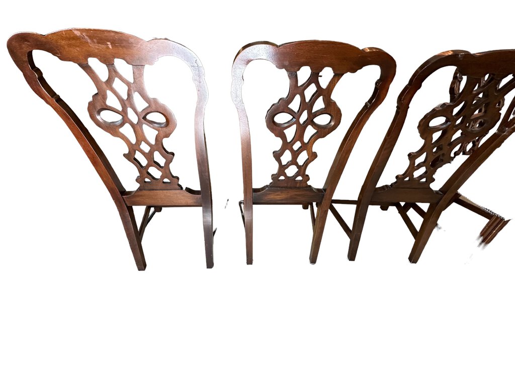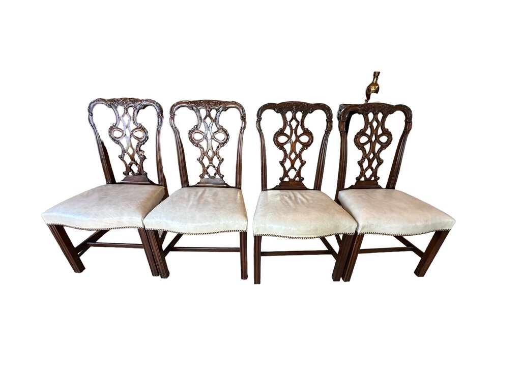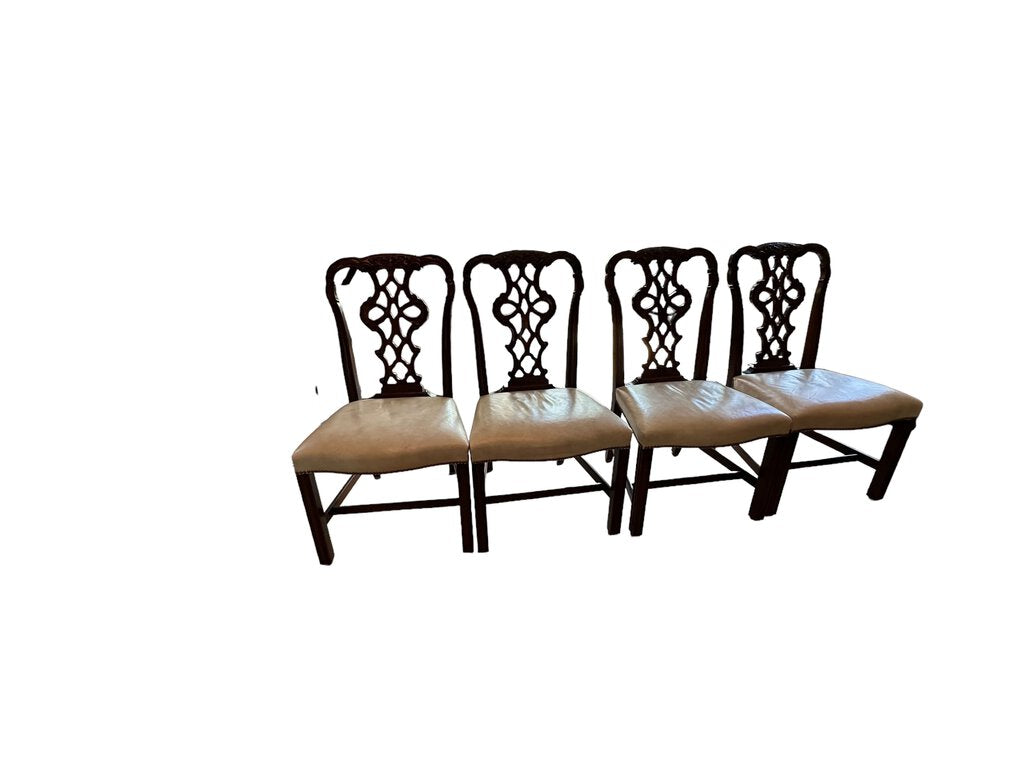 Set of 4 Chippendale Style Dining Chairs with Leather Seats